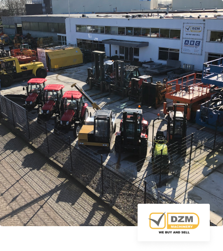 DZM Machinery beschikt over een bedrijfsterrein van meer dan 5000 m² en heeft minimaal 100 machines op voorraad. Wij verkopen onder andere heftrucks, minigravers, hoogwerkers, verreikers, rupsgraafmachines, tractoren, wiellader, dumpers, generatoren, asfaltwalsen, aanbouwdelen en onderdelen.